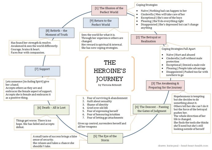 Method #2 – Hero/ine’s Myth – You may wish to tell your purpose myth through the structure of the Hero/ine’s Journey. Think of Luke Skywalker (Star Wars), or Dorothy (Wizard of Oz), or Frodo (Lord of the Rings). For an exploration of the classic myth told from the heroine’s perspective, you may wish to read Maureen Murdock’s The Heroine’s Journey.